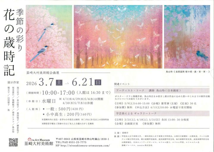 韮崎大村美術館展覧会「季節の彩り 花の歳時記」に当館館長の鳥山玲の作品が展示されます