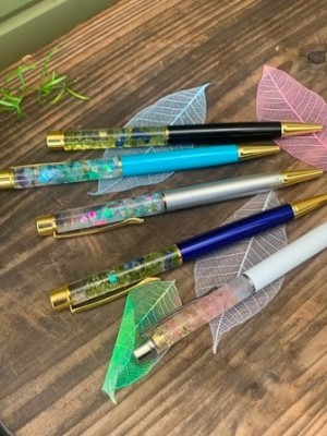 天然石や葉脈標本を入れてオリジナルのボールペンを作ります。唯一無二のボールペン、